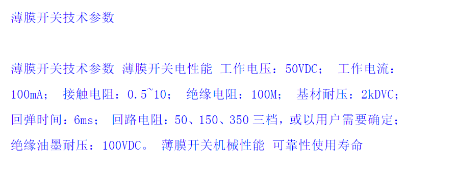 (東浦)柔性薄膜開關(guān)是薄膜開關(guān)的典型形式。這類薄膜開關(guān)之所以稱為柔性,是因為該薄膜開關(guān)的面膜層、隔離層、電路層全部由各種不同性質(zhì)的柔性薄膜所組成。柔性薄膜開關(guān)的電路層,均采用電器性能良好的聚酯薄膜(PET)作為開關(guān)電路圖形的載體,此層也分裝手感彈片、上下電路。由于聚酯薄膜所具有性質(zhì)的影響,使得該薄膜開關(guān)具有良好的絕緣性、耐熱性、抗折性和較高的回彈性。開關(guān)電路的圖形,包括開關(guān)的聯(lián)機及其引出線均采用低電阻,低溫條件下固化的導(dǎo)電性涂料印刷而成。因此,整個薄膜開關(guān)的組成,具有一定的柔軟性,不僅適合于平面體上使用,還能與曲面體配合。柔性薄膜開關(guān)引出線與開關(guān)體的本身是一體的,在制作群體開關(guān)的聯(lián)機時,將其匯集于薄膜的某一處,并按設(shè)計指定的位置和標(biāo)準(zhǔn)的線距向外延伸,作為柔軟的、可任意彎曲的、密封的引出導(dǎo)線與整機的后置電路相連。